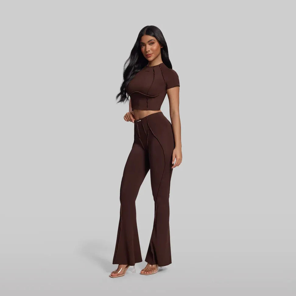 Stay comfortable and stylish during workouts with these seamless high-waisted yoga pants. Designed to lift and support, they provide a flattering fit for all body types while ensuring full mobility for running, gym sessions, or yoga practice. The flare design adds a modern touch, making them suitable for both training and casual wear.