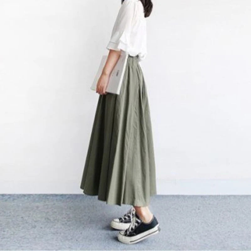 Cotton Maxi High Waist Long Skirt